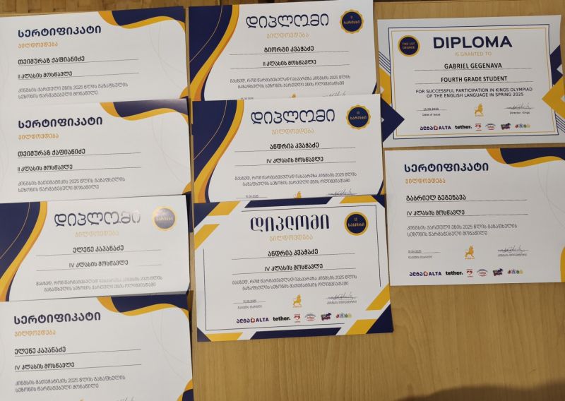 ტრადიციისამებრ, ჩვენი მოსწავლეები აქტიურად არიან ჩართულები კინგსისა და „ევერესტის“ ოლიმპიადაში სხვადასხვა საგნებით. გასული სასწავლო წლის გაზაფხულის ტურში წარმატებული მონაწილეობისათვის სერთიფიკატები და დიპლომები ამჯერად გადაეცათ მოსწავლეებს: