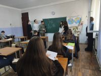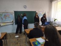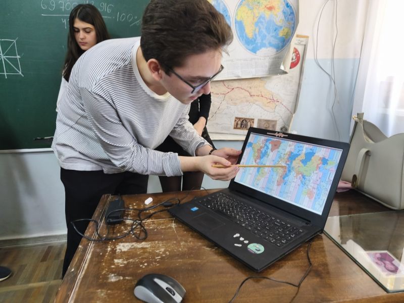 მოსწავლეებმა პრეზენტაციაში წარმოადგინეს სახელმწიფო დროშებში ცენტრული და ღერძული სიმეტრია, რუკაზე იპოვეს შესაბამისი ქვეყნების დედაქალაქების განედი და გრძედი. გაავლეს პარალელი საკოორდინატო სიბრტყეში წერტილის კოორდინატის პოვნასა და რუკაზე წერტილის გეოგრაფიული კოორდინატების პოვნას შორის.