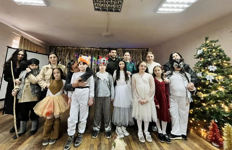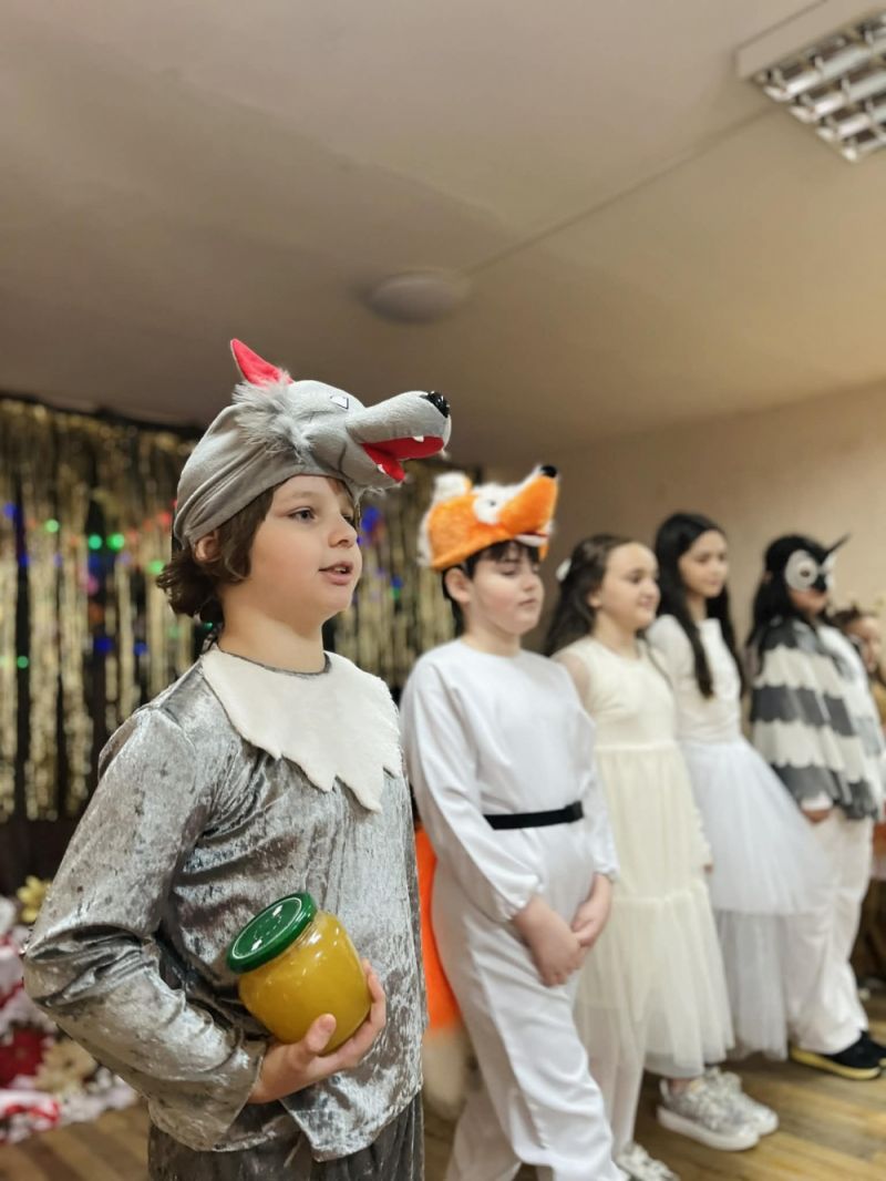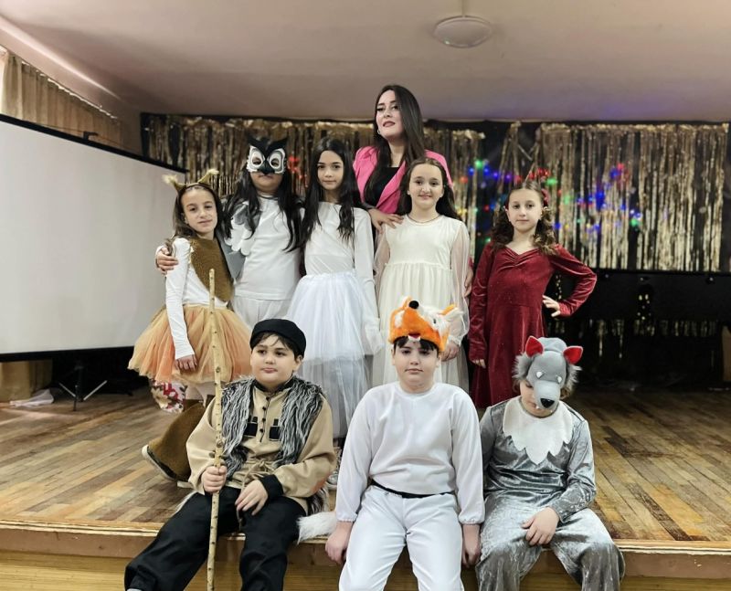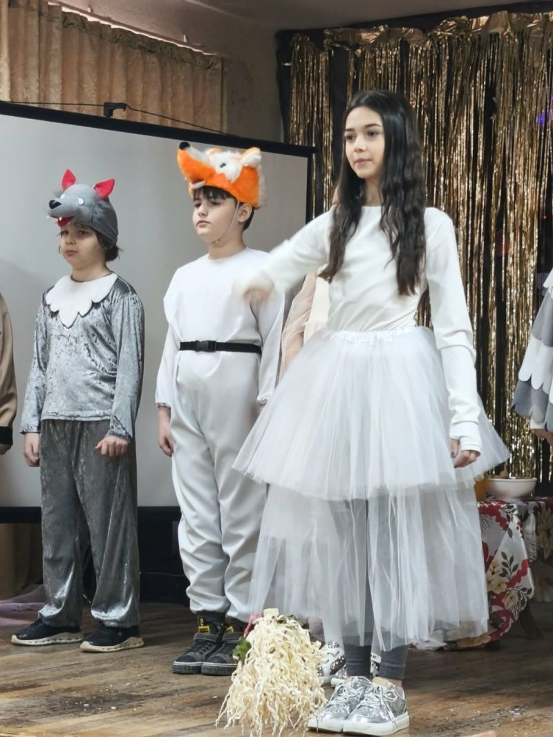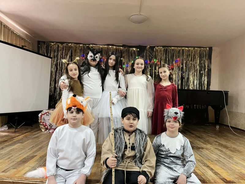 კლასის მოსწავლეებმა სკოლის სცენაზე გაითამაშეს მინი-სპექტაკლი