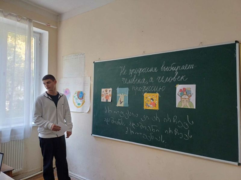 თემა: "პროფესია კი არ ირჩევს ადამიანს, ადამიანი ირჩევს პროფესიას" (მასწავლებლები: მ. კორსაველი (რუსული ენა) და ა. ჯოხაძე (მოქალაქეობა))