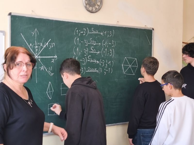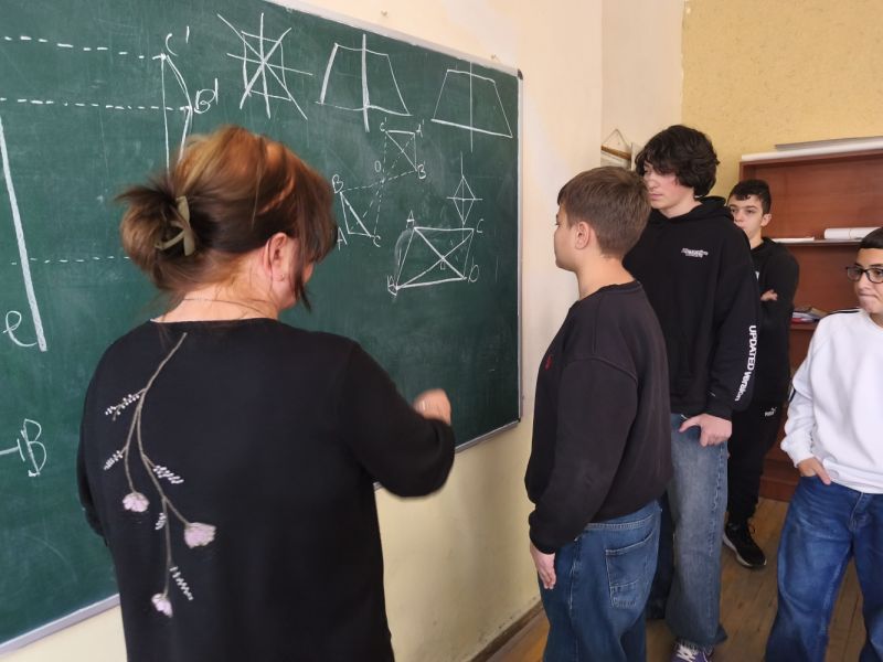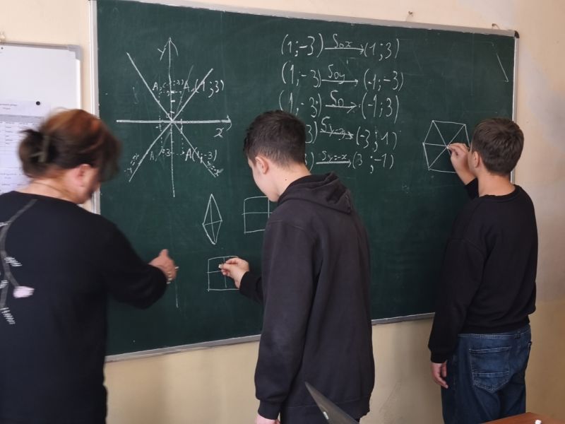 მოსწავლეებმა წარმოადგინეს ღერძული და ცენტრული სიმეტრია საკოორდინატო სიბრტყეში, ბრტყელ ფიგურებში: წრფე, მონაკვეთი, წრე, კვადრატი, მართკუთხედი, რომბი, წესიერი მრავალკუთხედები და ა. შ.